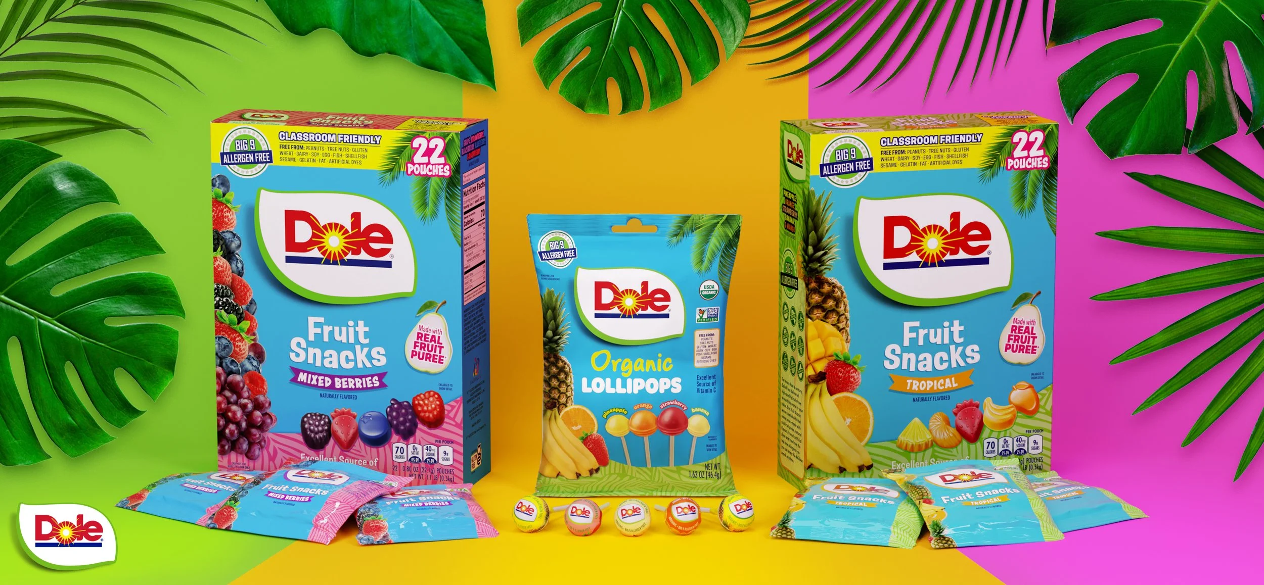 Dole and Imaginings 3 Launch Fruit Snacks and Organic Lollipops